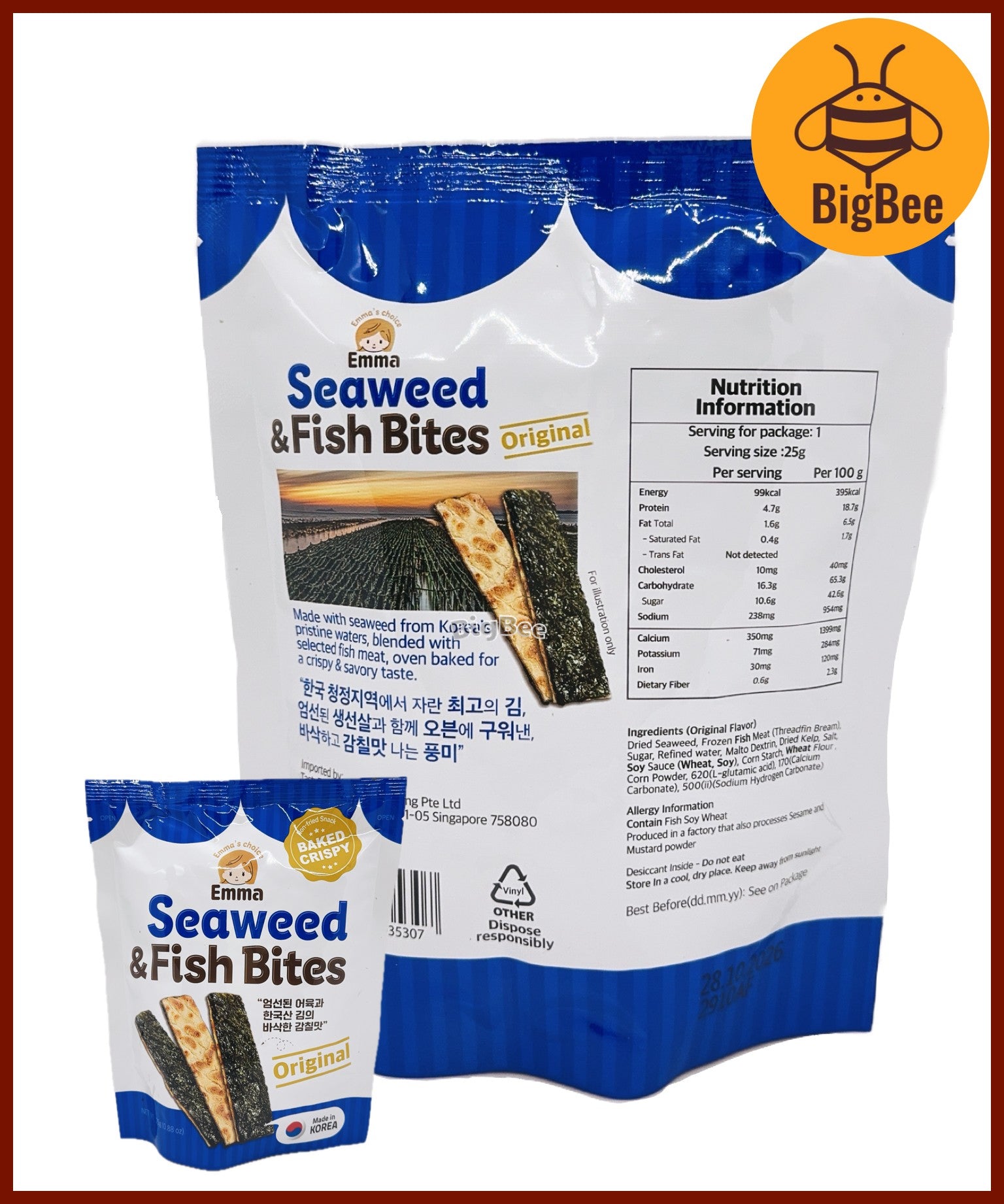 Emma's Choice - 25g/pack Seaweed & Fish Bites Original / Spicy / Wasabi (Made in Korea) Baked Crispy Non-Fried Snack